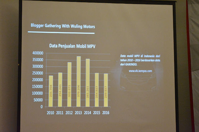 Berdasarkan sharing dengan para narasumber tersebut, ternyata gambaran tentang Wuling sama persis seperti apa yang saya bayangkan. Kehadiran Wuling sebagai mobil MPV di negeri ini karena ingin memfasilitasi orang-orang yang sangat suka bepergian ramai-ramai, bareng-bareng sama keluarganya. Mas Agung kemudian menunjukkan kepada kami tentang data penjualan mobil MPV yang lumayan banyak peminatnya di Indonesia.
