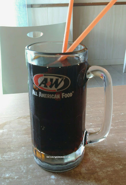 “Ehm, mau satu gelas Root Beer juga ya!” pinta saya. Soalnya enggak lengkap kalau mengunjungi A&W Restoran tanpa minum Root Beer-nya yang terkenal itu, sih.