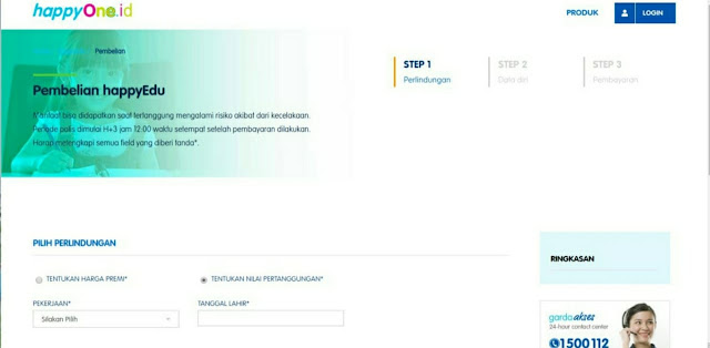 Nanti, akan ada beberapa langkah yang harus kita lengkapi/ isi form-nya. Langkah pertama kita pilih perlindungan, kedua kita isi data diri, lalu langkah terakhir adalah pembayaran.