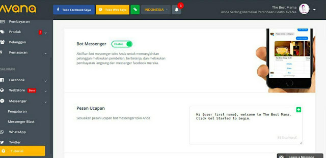 jadi saat buka toko di Avana langsung dapat 3 store di Webstore, Facebook Store dan Messenger Store ya.. menarik sekali nih mba