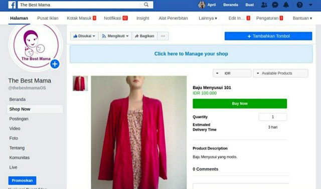 Laman jualan online saya (dulu) di Facebook.
