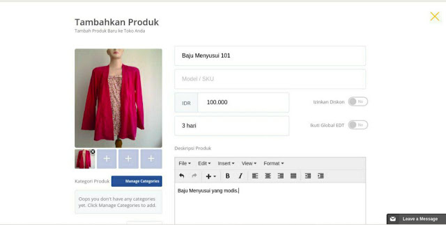 Hasilnya, produk akan dipajang di AVANA dan sudah langsung terintegrasi dengan Webstore, Facebook Store, serta Messenger Store, seperti gambar berikut: