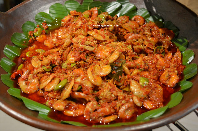 Perpaduan antara udang dan pete dengan bumbu merah. Rasanya pedas, agak manis, dan udangnya masih garing.