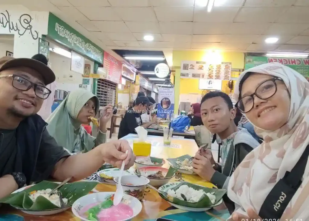 Kami pun muter-muter dari satu kedai ke kedai lain yang emang banyak di sana. Udah hampir menyerah buat nyari, dahlah makan di tempat lain aja, eh, ternyata kata suami dan anak-anak, kami udah muterin lokasi itu dua kali, wkwk. Mata nih meleng ke mana aja, sih? Kok nggak nyadar kalau dah dilewati 😛 .
