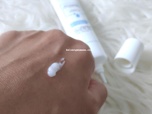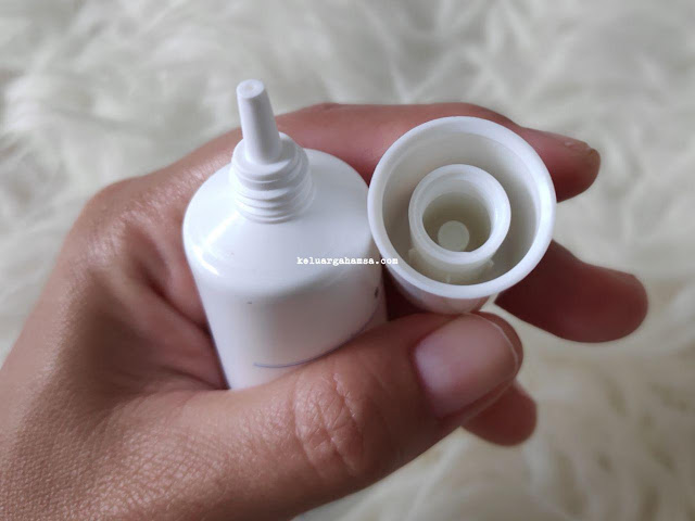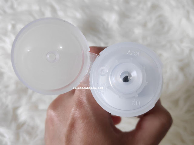 Kalau kita buka tutupnya dan kita pencet tube-nya pelan-pelan, maka akan keluar isinya yakni berupa lotion berwarna putih susu. Teksturnya tidak terlalu kental dan tidak wangi.