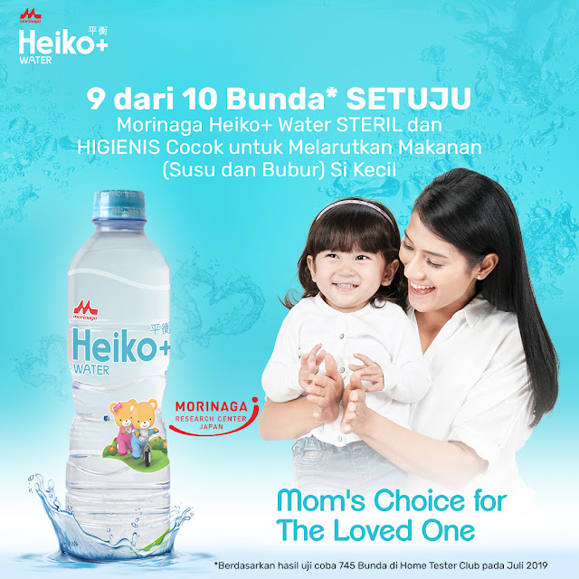 “9 dari 10 Bunda setuju, Morinaga Heiko+ Water ini steril dan higienis cocok untuk melarutkan makanan (susu dan bubur) Si Kecil.”