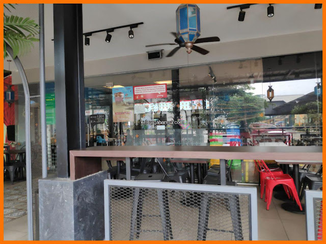 Trus, gerainya cukup terbuka karena dinding depan dan pintunya dari kaca tebal transparan. Kalau enggak salah selain bisa makan di dalam, di bagian teras juga tersedia beberapa bangku.