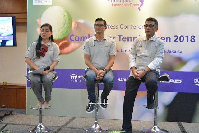 Bapak Michael tidak sendirian menjelaskan tentang Combiphar Tennis Open 2018 ini. Dalam konferensi pers yang diselenggarakan di The Sultan Hotel & Residence Jakarta (The Sultan) kala itu, hadir pula Ketua Umum PP PELTI Rildo Ananda Anwar (Bapak Rildo), Direktur Turnamen Combiphar Tennis Open 2018 yang juga sekaligus Wakil Sekjen PP PELTI Susan Soebakti (Ibu Susan), dan Marketing Communication Manager The Sultan Indira Puliraja (Ibu Indira).