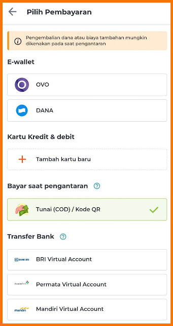 Setelah jadwal pengantaran fix kita bisa langsung membayar barang belanjaan kita. Cara pembayaran di HappyFresh pun sangat mudah. Beragam pilihan pembayaran ada. Bisa dengan cara transfer bank (ATM atau internet banking), cash on delivery (COD), kartu kredit atau debit, serta e-Wallet seperti Dana dan OVO. Kalau saya pribadi lebih suka pakai e-Wallet karena praktis.