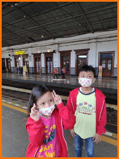 Kami memutuskan untuk naik kereta commuter line (KRL) ke Bogor yang cuma berjarak satu stasiun aja dari rumah kami di Cilebut. Sebenarnya, naik KRL ini bukan tanpa pertimbangan ya? Saya kepengen ngajak anak-anak naik KRL supaya mengobati kerinduan mereka juga pada moda transportasi umum yang satu ini. Dahulu, sebelum copid menyerang, hampir seminggu sekali soalnya kami bepergian naik KRL.