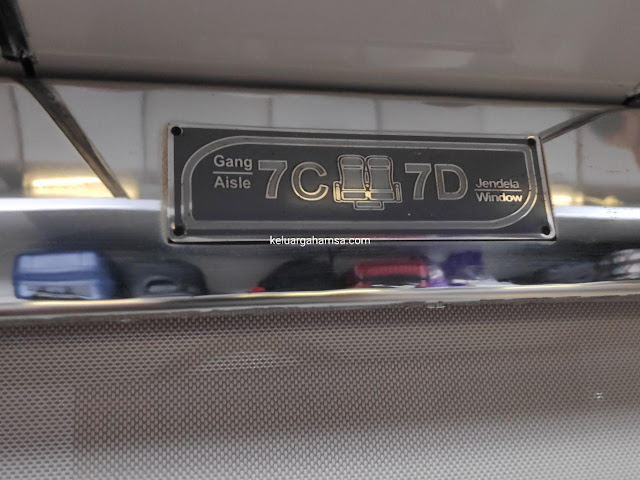 Ketika saya bepergian naik kereta api ini alhamdulillah jadwal keberangkatannya on time, yakni pukul 16.55 WIB dari Stasiun Pasar Senen, Jakarta. Kami dapat tempat duduk di gerbong eksekutif nomor 1 dengan kursi 7C, 7D, 8C, dan 8D. Sengaja nyari yang depan belakang dengan harapan kursi bisa diputar. Tapi, kayaknya kursinya enggak bisa diputar deh. Eh, atau saya aja yang enggak ngerti gimana caranya ya hehe.