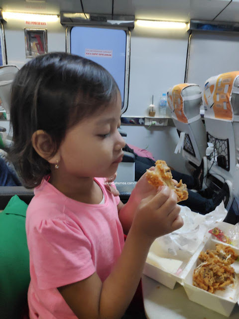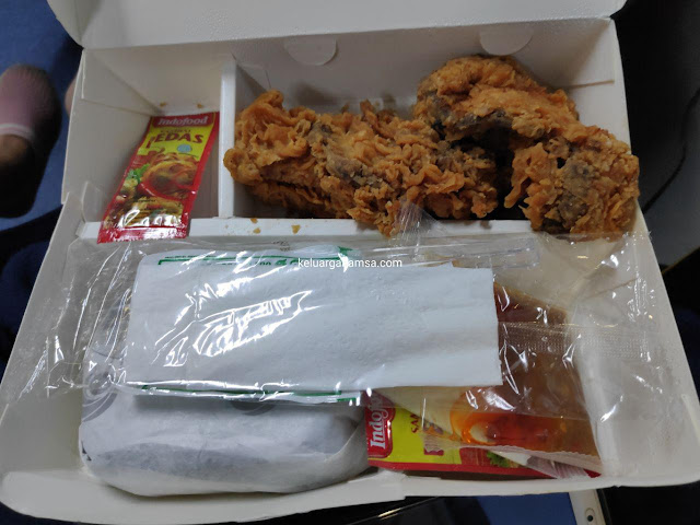 Buat yang suka lauk ayam, menu ini saya rekomendasikan. Soalnya dapat dua potong ayam goreng kremes yang porsinya lumayan haha. Ini kayaknya makanan yang pas buat anak kecil deh kalau di kereta.