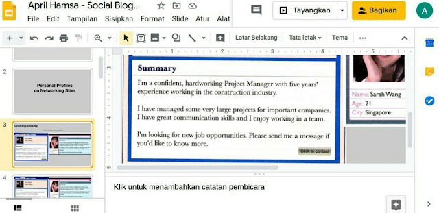 Kira-kira begitu deh garis besar untuk materi Personal Profiles on Networking Sites ini.