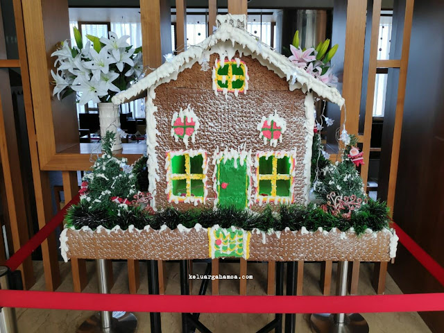 Selain Pohon Natal, waktu itu juga telah dipamerkan Ginger House (rumah-rumahan dari kue ginger). Ginger House berwarna dasar coklat tersebut lumayan besar ukurannya. Detailnya bagus, seperti rumah sungguhan, dengan pintu, jendela, atap, dan pagar di sekelilingnya. FYI, katanya sih proyek pembuatan Ginger House ini memakan waktu tujuh hari lamanya. Semua dikerjakan oleh tim Kitchen Pastry Hotel Grand Zuri BSD City.