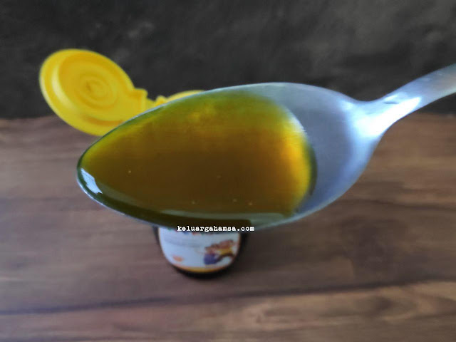 Sedangkan untuk rasa multivitamin ini menurut saya cukup unik, karena klaim di kemasannya adalah rasa jeruk. Manisnya jeruk dan madu membuat multivitamin ini cukup disukai oleh anak-anak saya. Kalau warna cairannya sih mirip madu, kecoklatan, namun lebih cair kayaknya, enggak sepekat madu.