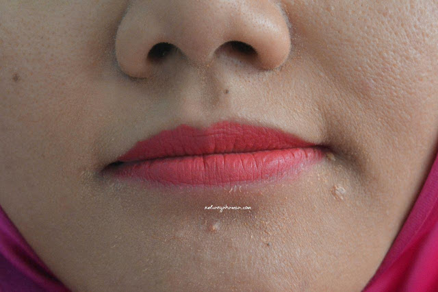 Sedangkan untuk hasil swatch Bold & Nourshing Lipstick di bibir saya seperti ini: