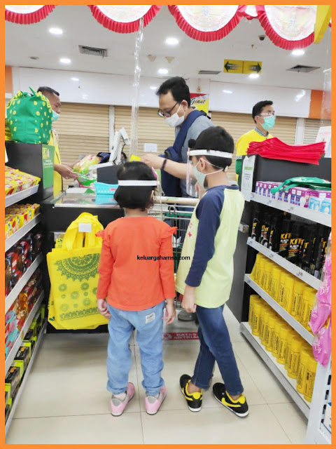 Singkat cerita, anak-anak menyanggupi rules kayak gitu, berangkatlah kami sekeluarga pergi ke supermarket. Akhirnyaaa, jadi jugaaaa, keluar dari penjara rumah sebentar.