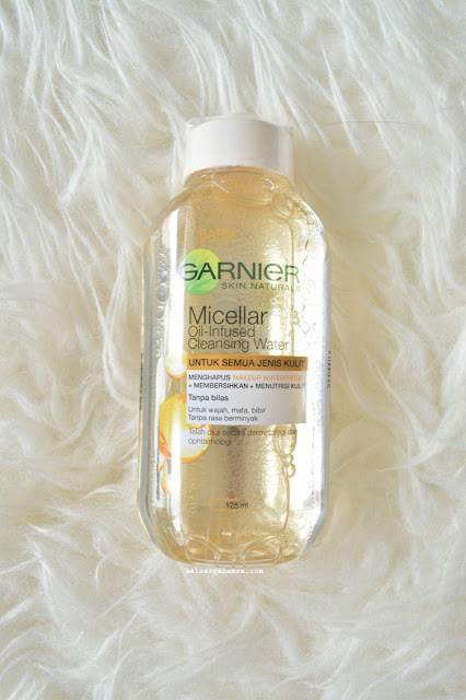 - Garnier Micellar Oil-Infused Cleansing Water For All Skin Types (tutup botol putih).