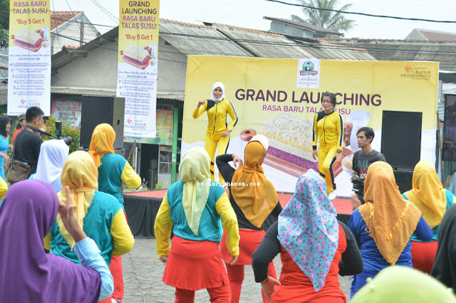 Setelah senam sehat dan cek kesehatan, baru Lapis Bogor Sangkuriang melaunching produknya di hadapan ibu-ibu. Launching produk baru Lapis Bogor Sangkuriang rasa Talas Susu dilakukan oleh Promotion and Store Manager Lapis Sangkuriang Andy Giandanni (Bapak Andy).