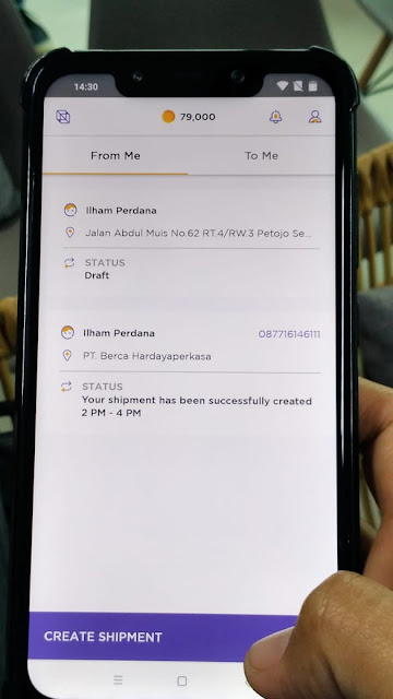- Lalu klik create shipment. Maka paket kita pun siap diambil oleh Happiness Hero untuk diantar ke penerima.