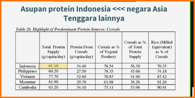 Di Indonesia ini problemnya adalah banyak yang mengesampingkan asupan protein hewani. Data menunjukkan bahwa Indonesia asupan proteinnya termasuk rendah dibandingkan negara Asia Tenggara lainnya.