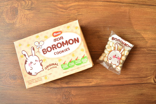 BTW, ngobrolin soal makan sendiri, Dema tuh suka sekali ngemil. Salah satu camilan favoritnya adalah Monde Boromon Cookies (Boromon). Kemasannya seperti ini lho: