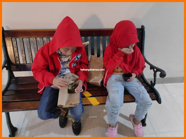Karena enggak menyangka bakalan nunggu lama (saya kira bakal lebih cepat karena udah dapat nomor secara online sebelumnya huhu 😛 ), kelupaan deh, enggak membawakan anak-anak camilan. Kami cuma bawa minum doank. Untungnya di depan ruangan ada kantin gitu, jadi anak-anak bisa beli camilan yang lumayan enak dan mengenyangkan.