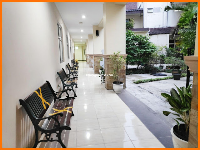 Oh iya, protokol sebelum masuk rumah sakit yaaa standar lha ya. Cek suhu tubuh dulu pakai termometer yang ditembak di jidat itu, trus pihak rumah sakit juga menyediakan media buat cuci tangan atau hand sanitizer. Begitu masuk lobi rumah sakit, kami diminta ambil nomor antrean, sesudah itu harus menunggu dulu untuk kemudian dipanggil mengisi form pendaftaran.