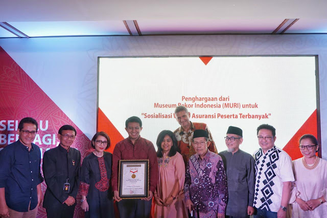 Penyerahan penghargaan dari MURI untuk kategori “Sosialisasi Wakaf Asuransi Peserta Terbanyak”. Foto oleh: Timothy W.