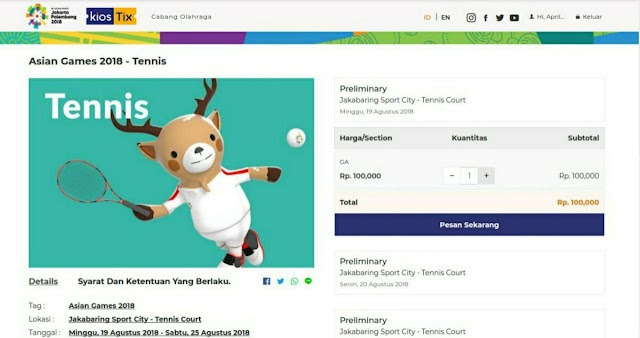 Oh iya, teman-teman sudah tahu belum bagaimana caranya membeli tiket Asian Games 2018 melalui kiosTix? Kalau masih bingung, baiklah, saya coba jelaskan langkah-langkahnya yaaa. Berikut adalah langkah-langkah membeli tiket Asian Games 2018 via kiosTix: