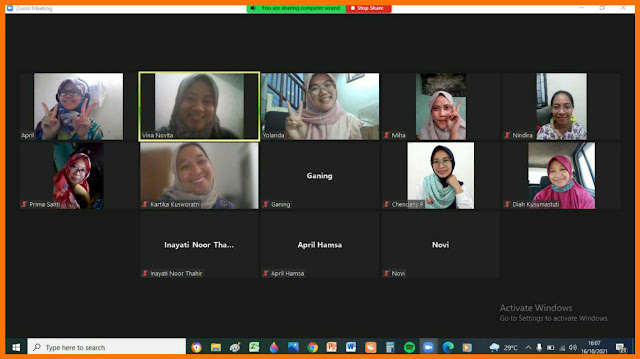 Kalau di tim kami bertiga membagi tugas sebagai moderator, pembuat poster dan bagian pendaftaran, serta yang membuat laporan. Kami sepakat melakukannya secara bergiliran.