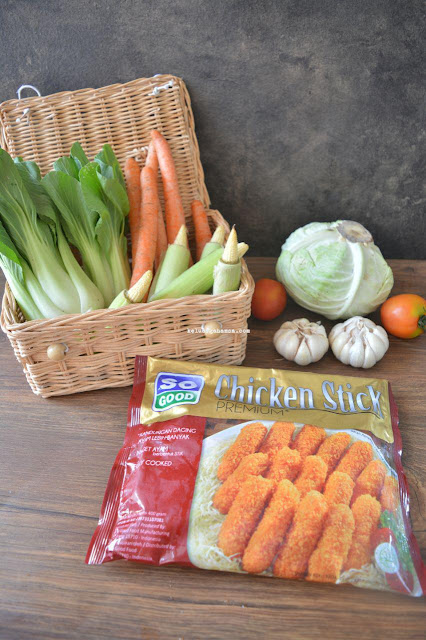 - Capcay sayuran dengan So Good Chicken Stick Premium pun siap disajikan.