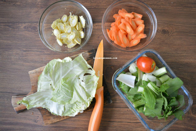 - Cuci semua sayuran sampai bersih, kemudian potong-potong sesuai selera.