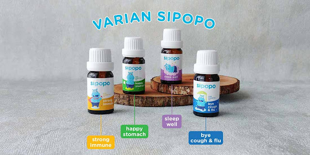 Sipopo punya empat varian produk yang bisa parents pilih sesuai kebutuhan, yakni Strong Immune, Bye Cough and Flu, Sleep Well, dan Happy Stomach. Saya jelaskan perbedaan masing-masing produk sesuai katalog di website Sipopo yang saya baca ya: