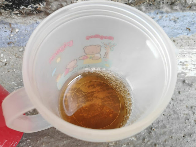 Joypolinse Propolis Mouthwash ini kemasannya berbentuk botol dengan tutup ulir. Isinya berbentuk cairan berwarna coklat seperti air the yang keruh. Kalau botolnya kita buka dan cium, baunya agak menyengat sebagaimana obat kumur pada umumnya.
