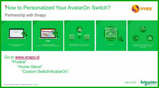 Teman-teman ada yang kepengen ganti sakelar di rumah dengan AvatarOn? Gampang kok cara mendapatkan sakelar ini. Informasi dari Mbak Niken, kita bisa membeli sakelar ini di toko atau pusat elektronik. Sedangkan, untuk personalisasi desain penutup sakelar AvatarOn, kita dapat membeli dan mencetaknya di percetakan Snapy terdekat atau bisa juga kita lakukan secara online. Yup, Snapy adalah vendor percetakan resmi untuk sakelar AvatarOn.
