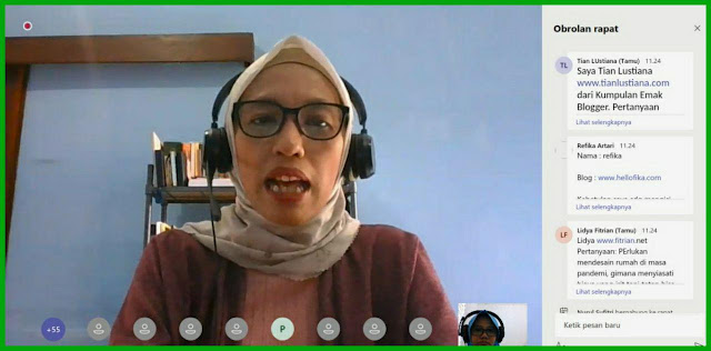 Mbak Rina ketika menjelaskan pentingnya memiliki rumah yang nyaman untuk beraktivitas di rumah selama pandemi.