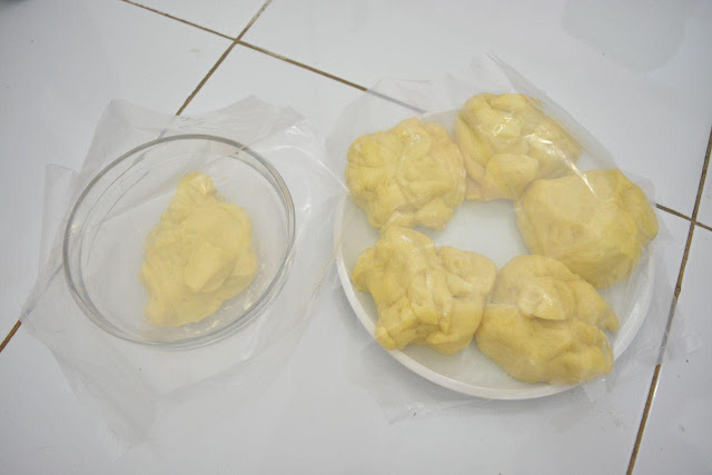 • Tutup adonan dengan plastik dan diamkan selama lima menit.