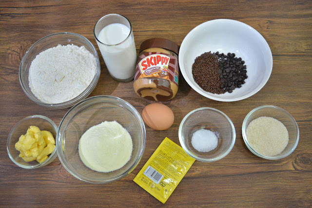 Bahan-bahan Roti Isi Selai Kacang Coklat Skippy.