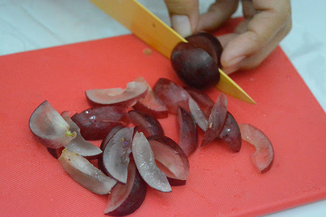 Bahan-bahan Salad Buah dengan Dressing Selai Kacang Skippy.