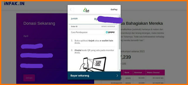 Setelah scan kode QR berhasil, nanti kita akan langsung dapat notifikasi di aplikasi Gojek maupun message via WhatsApp. Nama kita pun langsung muncul di updatean nama donatur yang ada di website infak.in. Hal ini menunjukkan transparasi data donatur yang telah menyedekahkan hartanya.