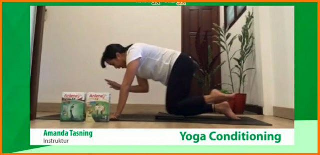 Selain gerakan yang menjadi bagian dari kompetisi Anlene tadi, aktivitas bergerak lainnya yang mudah kita lakukan di rumah adalah yoga.
