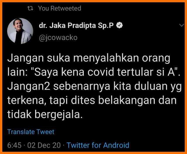 Tentang Covid-19. Sumber: akun Twitter dr. Jaka Pradipta.