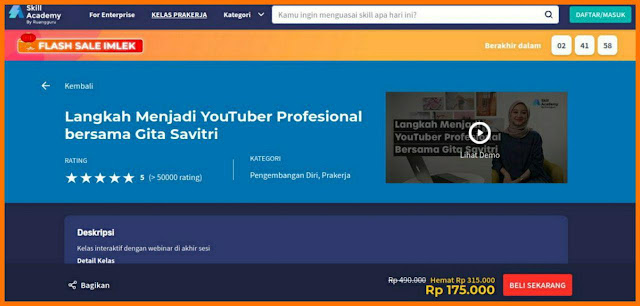 Banyak juga ya kelasnya, tinggal kita pilih sesuai kebutuhan dan kemampuan.. pengajarnya berpengalaman dan bisa ditonton ulang kapan pun..