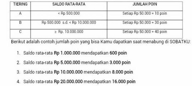 - Cara ketiga tentu saja dengan rajin menabung dan meningkatkan saldo. Semakin tinggi saldo tabungan kita, maka poin dari SOBATKU pun akan makin banyak kita dapatkan.