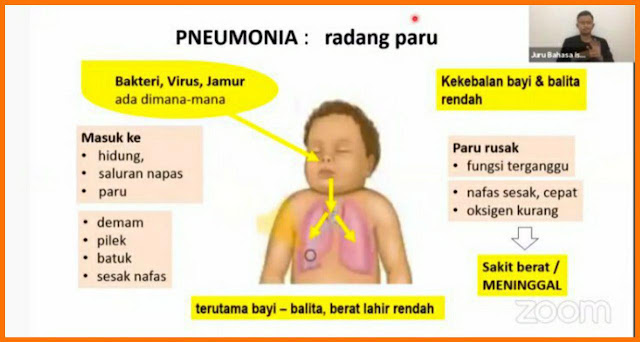 Salah satu narasumber dalam webinar hari itu adalah Prof. DR. dr. Soedjatmiko, SpA(K), Msi, seorang dokter spesialis anak sekaligus konsultan tumbuh kembang. Prof. Soedjatmiko dalam kesempatan itu menjelaskan bahwa anak dengan berat badan lahir rendah berisiko tinggi terkena pneumonia.