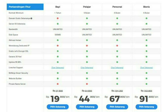 - Tiap pembelian web hosting selama minimal periode satu tahun dan memilih minimal Paket Pelajar, kita akan langsung dapat nama domain blog dan SSL (saluran komunikasi yang aman) gratis yang berlaku untuk selamanya.