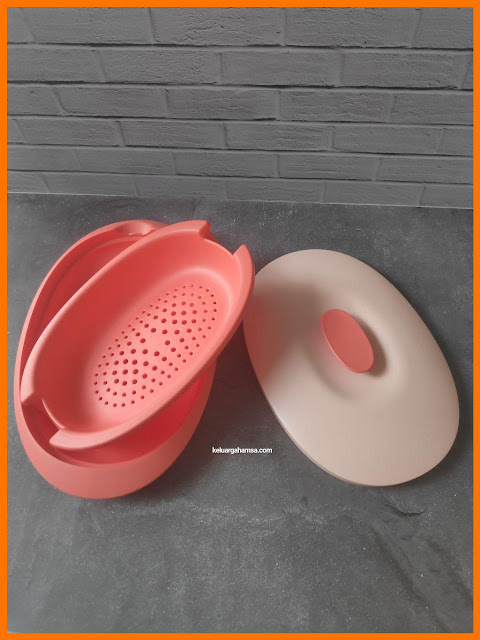 Sedangkan, untuk colander, tadi sudah saya jelaskan di atas, kalau bagian bawah wadah bisa kita isi air hangat, sehingga makanan di atas colander tetap hangat.