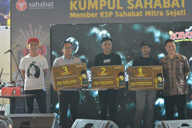 Kembali lagi ke Kumpul Sahabat Member KSP Sahabat Mitra Sejati beberapa waktu lalu, kali ini acaranya berlangsung di Jakarta. Tepatnya berlokasi di Gedung Sampoerna Strategic Square. Selain pengundian hadiah grand price, berlangsung juga bazar barang-barang dengan diskon/ promo menarik, sekaligus pengumuman lomba Stand Up Comedy yang diselenggarakan beberapa waktu sebelumnya. Berikut adalah nama-nama pemenang lomba Stand Up Comedy yang diselenggarakan oleh Sobatku: