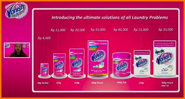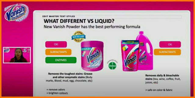 Saya mengenal Vanish Oxi Action Multi Power ketika mengikuti acara digital launching produk yang bentuknya bubuk ini pada tanggal 25 Maret lalu. Dalam kesempatan itu pihak Vanish memperkenalkan dan mendemonstrasikan bagaimana cara pemakaian produk ini. Saya pribadi, sebelumnya sudah menggunakan Vanish penghilang noda yang bentuknya cair itu (kemasan pink). Makanya saya penasaran banget nyimak demo produk terbarunya ini.